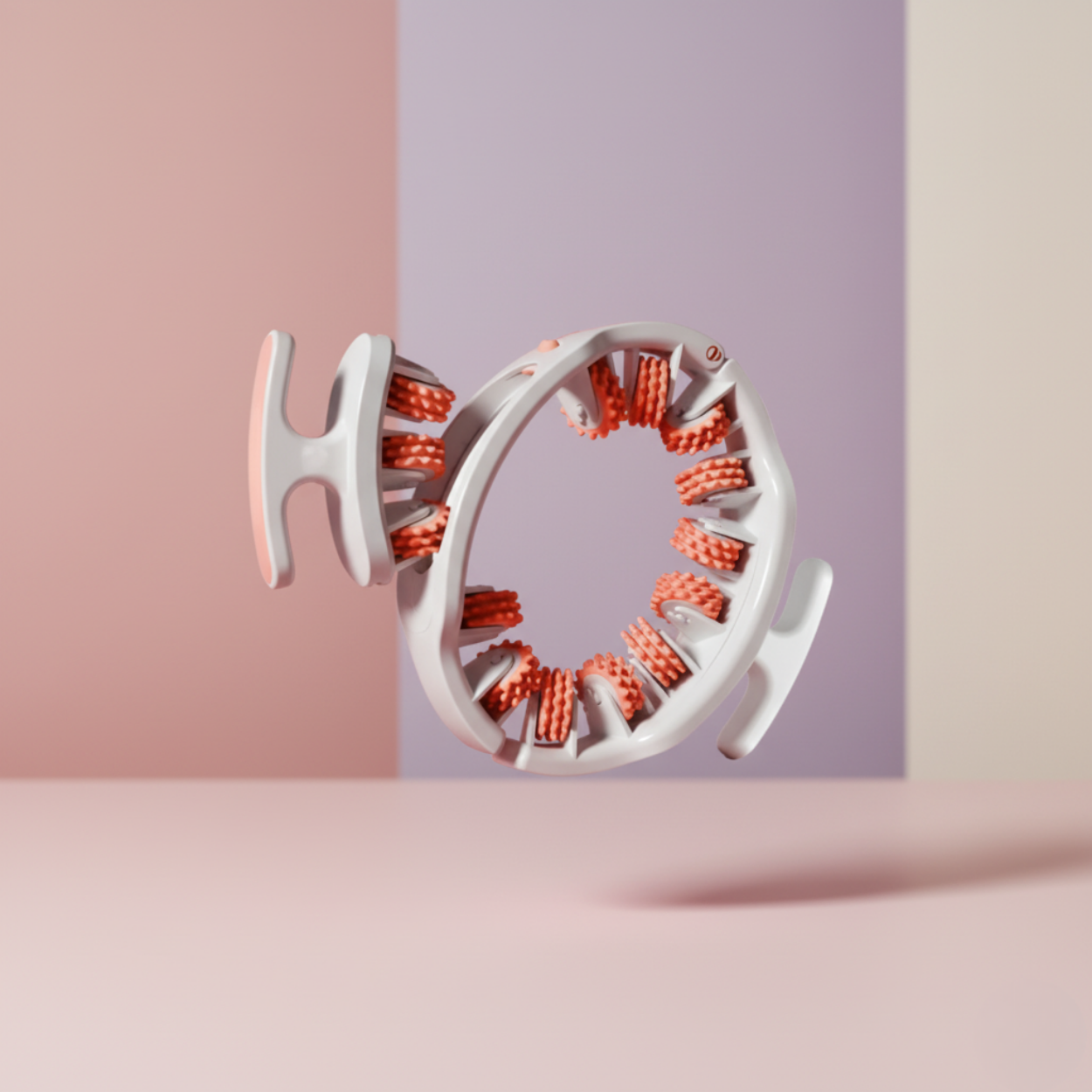 Ontdek de kracht van een professionele anti-cellulite massage bij u thuis met deze innovatieve anti-cellulite massageroller! Ontworpen om de bewegingen van het palper-rollen na te bootsen, combineert dit anti-cellulite rollerhulpmiddel voor thuis een "knijp-" en "kneed"-effect dankzij de convergente anti-cellulite massagerollen.