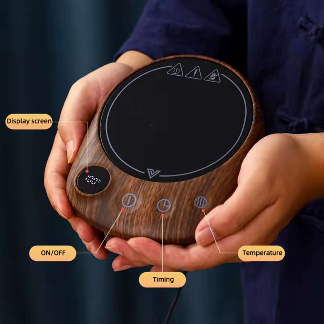 Vergeet koude koffie die op het bureau wordt vergeten! Dankzij deze krachtige bekerwarmer van 200W kunt u genieten van thee, koffie of warme chocolade op de ideale temperatuur, wanneer u maar wilt. Met zijn elegante houtlook design past hij perfect op uw bureau of in de keuken, terwijl hij u dagelijks comfort en gebruiksgemak biedt.